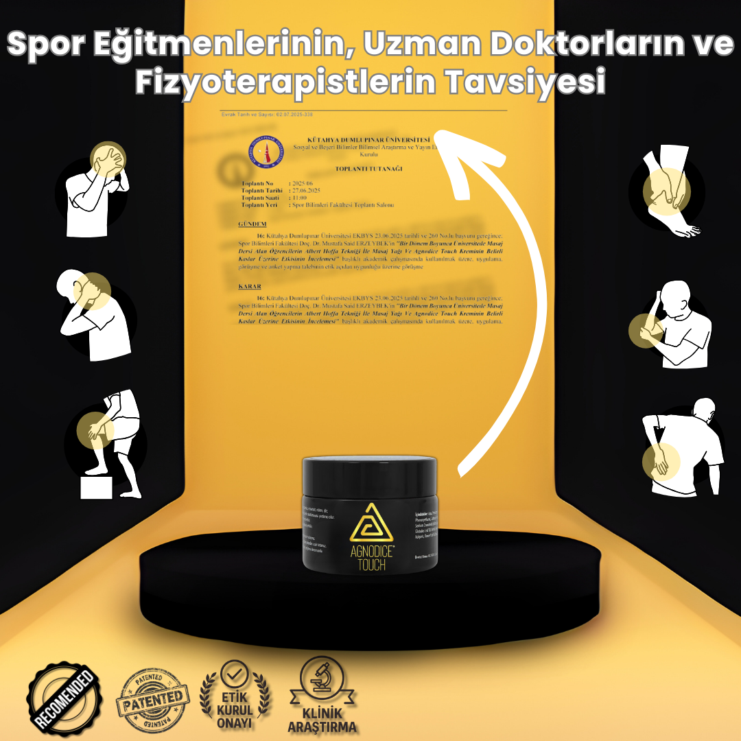 Agnodice Touch 30ml; beden farkındalığıyla hareket eden, düzenli egzersiz yapan ve vücuduna özen gösteren bireyler için geliştirilmiş bitkisel bir topikal destek kremidir.